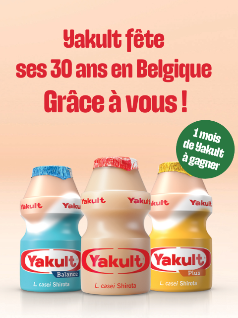 Yakult offre un mois de Yakult gratuit à 30 familles (de 4 personnes) en Belgique.